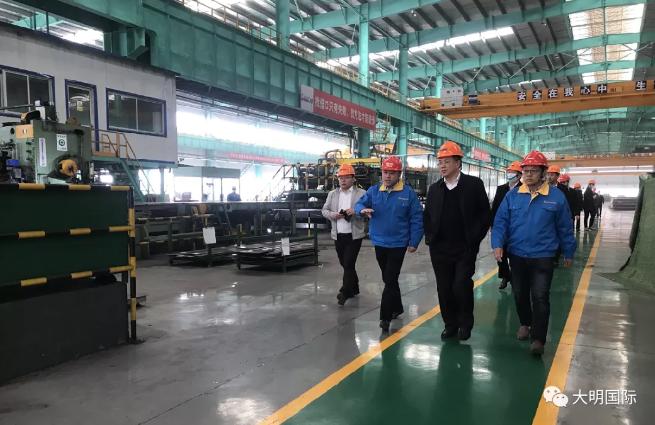 福田汽车集团代表一行参观了大明泰安加工中心车间,周彬总经理详细介绍了大明泰安加工中心的服务模式、加工能力、设备规模及后期规划等。邢洪金副书记对大明从优质钢铁材料供应到简单加工、深加工制造配套的“一站式”服务模式进行了深入了解,他对大明泰安加工中心的现场管理和设备能力给与了高度评价,同时希望能在商用车、环卫车等领域达成战略合作关系,实现双赢。