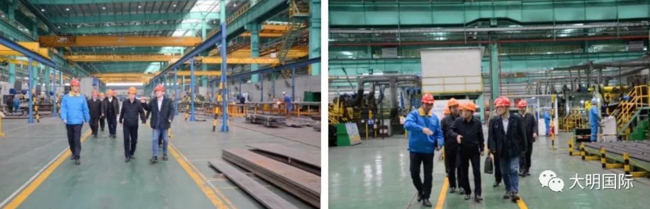 3月17日,酒钢集团宏兴钢铁股份有限公司党委书记、董事长张正展、不锈钢分公司总经理秦俊山、无锡公司经理王洪园一行来访大明,大明国际董事会主席周克明、大明重工总经理王健、江苏大明总经理张锋、集团不锈钢事业部总经理倪晨、大明靖江加工中心总经理陈宁、集团采购总监助理朱海斌热情接待。