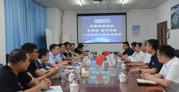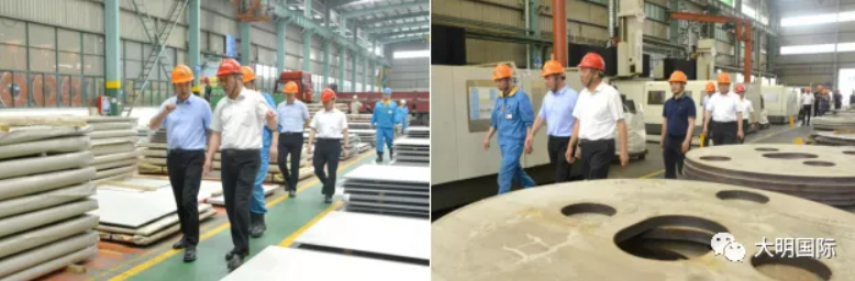5月28日,河钢邯钢副总经理李耀强、技术中心主任陈子刚、邯宝热轧厂党委书记潘竟忠、品质管理部副部长白硕、销售分公司副处长李建国等一行来访大明,大明国际总裁蒋长虹、集团总工程师唐中海、靖江加工中心总经理陈宁、集团碳钢事业部总经理邓梁峰、副总经理杨顺、总经理助理董云龙等热情接待。李耀强副总经理一行先后参观了大明集团总部、大明靖江加工中心和大明重工,充分了解了大明的设备工艺、加工能力等情况。