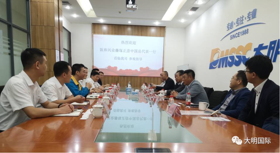 6月2日,阪和兴业(上海)管理有限公司中国总代表藤塚正彦、董事长特别助理米原佳彦、阪和(大连)总经理刘钟男等领导率阪和上海、天津、大连团队一行7人来访大明天津加工中心。大明天津加工中心总经理于长江、副总经理夏红卫、副总经理张帆等热情接待并座谈交流。