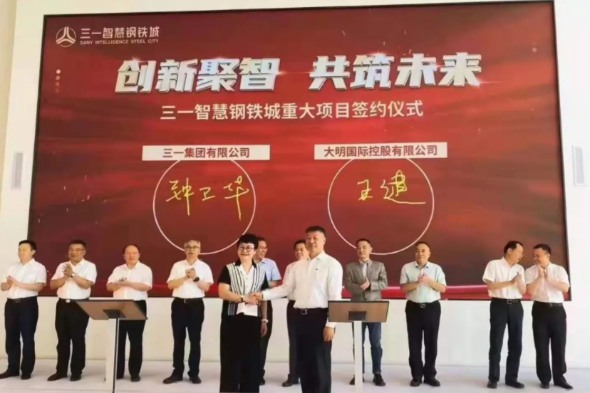 6月5日,三一集团与大明国际战略合作签约仪式在位于湖南株洲的三一智慧钢铁城产业服务中心隆重举行。